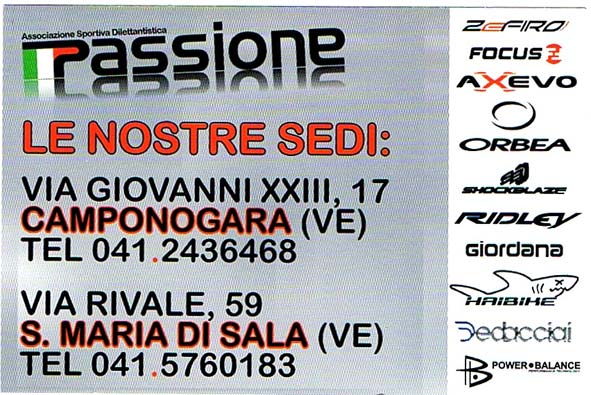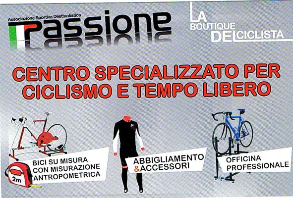 Ringrazio il proprietario per l'ospitalità e la cortesia. Il negozio è un centro specializzato per il ciclismo dove trova sede l'Associazione Sportiva Dilettantistica "Passione":