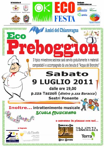 La manifestazione quest'anno ha ottenuto il riconoscimento di "Eco-Festa" da parte della Provincia di Genova e grazie anche all'utilizzo esclusivo di materiali compostabili e di sola acqua del "bronzino" (del rubinetto, per i non genovesi) riusciamo a dimostrare che con un piccolo sforzo non si generano rifiuti, ma materiale che si può mandare agli impianti di compostaggio per avere un ottimo ammendante agricolo.