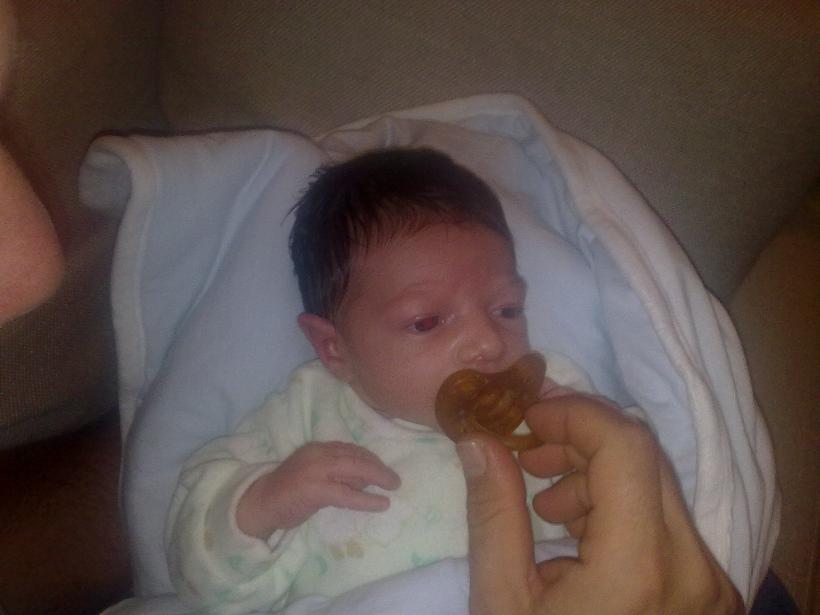 il piccolo Petorino sta bene, prende peso regolarmente; attualmente pesa 4kili e mezzo. alla visita di controllo al bammin gesu' ci hanno detto che sta andando tutto bene e che non ci sono ostruzioni di alcun tipo. prossima visita a fine gennaio tanto per essere scrupolosi. allego foto: