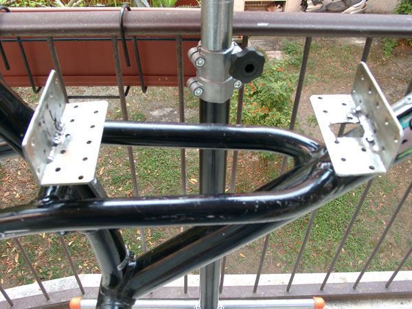 La mia idea di bici elettrica prende sempre più forma, qui sotto ne potete vedere uno schizzo. Come si può osservare la bici ha il carro rialzato, qui una immagine dal vero http://www.geocities.com/de_cycleman/alpinestars.html Il carro rialzato sembra formare un appoggio ideale per le batterie, mi sono solo dovuto ingegnare su un sistema di appoggio solido e che garantisca la rimozione con semplicità: