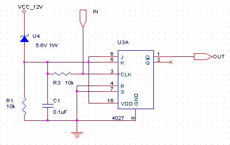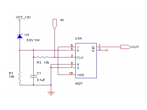 Grazie Petor, nel mio caso per costruire il circuito ho utilizzato un semplice pezzetto di piastrina commerciale "millefori" . Ho montato il tutto e ricoperto con silicone. Mi ricordo di aver adattato i connettori in modo da poterlo inserire e disinserire facilmente e il tutto poteva avere una dimensione di circa 3x3Cm. Sono passati ormai più di 5 anni e non ho mai più smontato nulla per cui non ricordo perfettamente tutti i dettagli. Una cosa che noto ora, dopo aver trovato sul forum lo schema a blocchi, è che su quel connettore della tachimetrica sono presenti 3 fili: uno rosso, uno nero e uno bianco. A prima vista sembrerebbe che il segnale tachimetrica sia presente sul filo bianco, il +12V sul rosso e il nero vada a massa. Ora sullo schizzo che mi ritrovo dice che il filo ulilizzato in ingresso sul (piedino 3 del 4027 è il nero, mentre il bianco è quello che ho utilizzato come massa. Mi è difficile ricontrollare ora, dovrei smontare nuovamente tutto. Comunque il concetto è sempre valido, rimane solo da identificare con certezza dove è presente il segnale della tachimetrica. La spiegazione del circuito è questa: devo avere in uscita un segnale logico a +5V da inviare alla certralina per cui prelevo il +12 (filo rosso, passo attraverso lo Zener "U4" da 5,6V che lo riduce di circa la metà e lo uso anche per alimentare CMOS 4027 collegato come divisore per due. Avendo notato che il segnale della centralina esce in "Open collector" sono costretto ad inserire la resistenza "R3" di tiro al +5V. Ho poi messo anche un piccolo condensatore ceramico "C1" di filtro per i disturbi. Ho usato un CMOS come divisore, penso che vadano bene anche altri componenti simili. L'importante è riuscire a dividere per 2 il segnale che la tachimetrica invia alla centralina