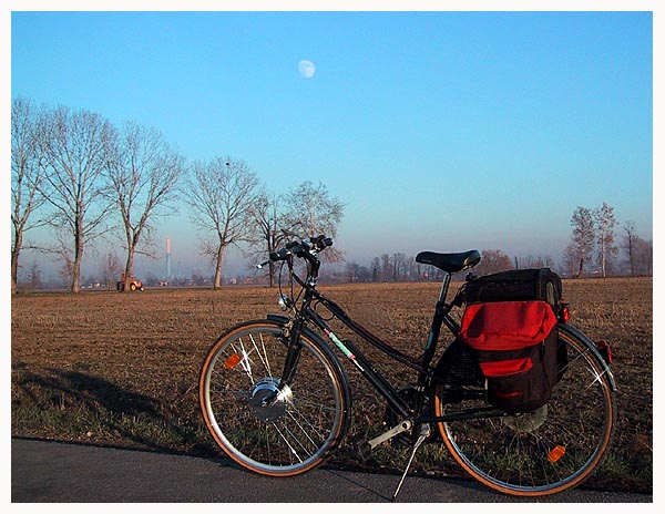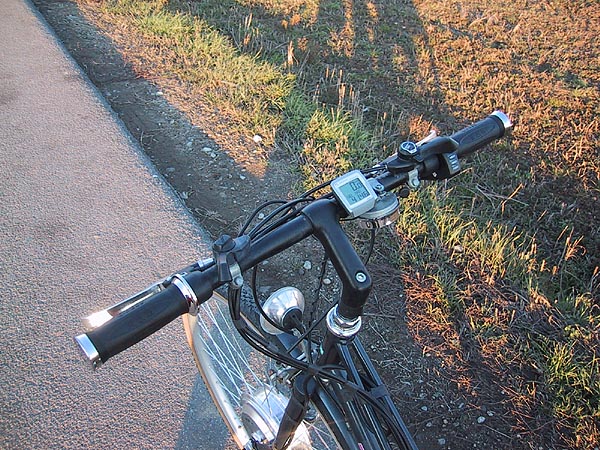 Dopo i primi metri si è portati subito non appena la strada si fa libera a salire di velocità i 20km/h sono il minimo che puoi fare ed il motore non è nemmeno necessario azionarlo mi porto verso i 25km/h e apro un filo di gas 50W e si pedala allegri, qualche pedalata in piu' e si è subito a 27-28km/h un'adatura naturale sempre con un filo di gas provo a rilanciare sui pedali e mi mantengo sui 30km/h e la sorpresa è che bastano ancora 50-100W al massimo per andare via spediti senza problemi. Mi sembra, kili in piu' permettendo, di essere a bordo della mia Bianchi da corsa, sto andando alle stesse andature piu' o meno con lo stesso sforzo muscolare ma con un bici ben piu' pesante, gomme di sezione differente, con leggrea artigliatura, pressione inferiore dei pneumatici, borse sul portapacchi giaccavento e chi piu' ne ha piu' ne metta.