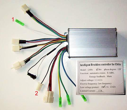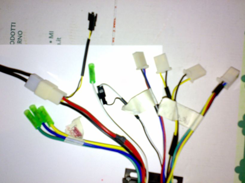 si vista cosi' dovrebbe essere la normale da sx 1) i tre connettori per il motore 2) il connettore di alimentazione (il connettorino che esce l'hai messo tu?) 3) il cavo bianco di indefinita utilità 4) i due cavetti (nero e bianco) per il "debridage" come lo chiamano i francesi è quello che serve cosi' comè a farlo andare secondo codice Cinese o Giapponese 5) connettore pas o acceleratore 6) connettore freni 7) connettore freni 8) connettore sensori Hall motore