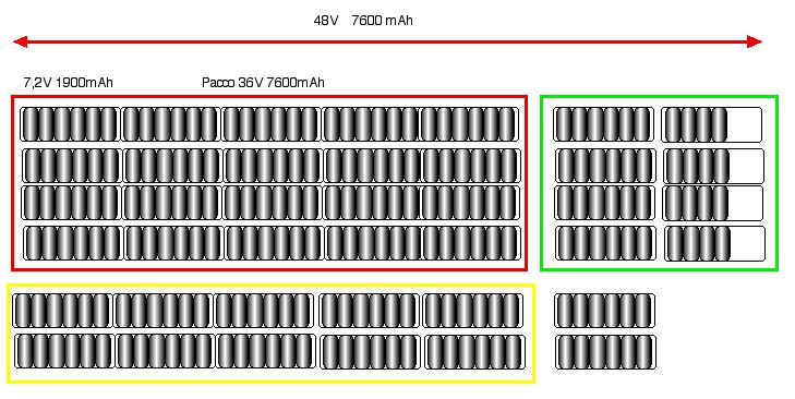 avanzeresti un pacco da 36V 3800mAh + 2 pacchi da 6 + 8batterie se inveci le vuoi usare tutte puoi aggiungere una fila come sopra