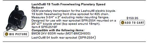 Il motore costa meno di 50$, con ammenicoli vari (trottle, controller, cutoff) non si arriva a 100$ (60 euro!), poi mancano solo le batterie, una guarnitura a ruotalibera idonea, un po' di ingegno e un fabbro.