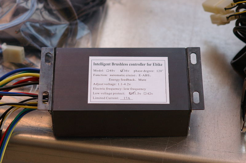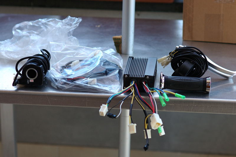 quello che mi piace particolarmente è il cerchio sul quale è montato il motore, è identico ai cerchi della mia bici.. il caricabatterie c'è ma non mi serviva, comunque c'è e me lo tengo a corredo ci sono cavi per cablaggi vari e per collegare e caricare le batt, cavi anche troppo lunghi ma va bene così, MANCA però il fusibile, provvederò...