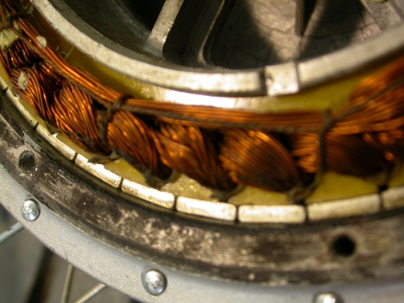 Per aprire il motore non si fa come dice Joffa, perchè se danneggi i carter col cacciavite poi può filtrare acqua: devi togliere le viti lato cavo di alimentazione e poi spingere l'asse dal lato opposto, con un estrattore o battendo con un martello con massa battente in plastica. A quel punto il carter si apre e lo puoi togliere; attenzione, quando sfili il mozzo, alla forza dei magneti e quando lo rimonti a non danneggiarli. Al rimontaggio, devi provvedere a sigillare di nuovo i carter con apposita pasta siliconica, che si trova dai rivenditori di ricambi auto...