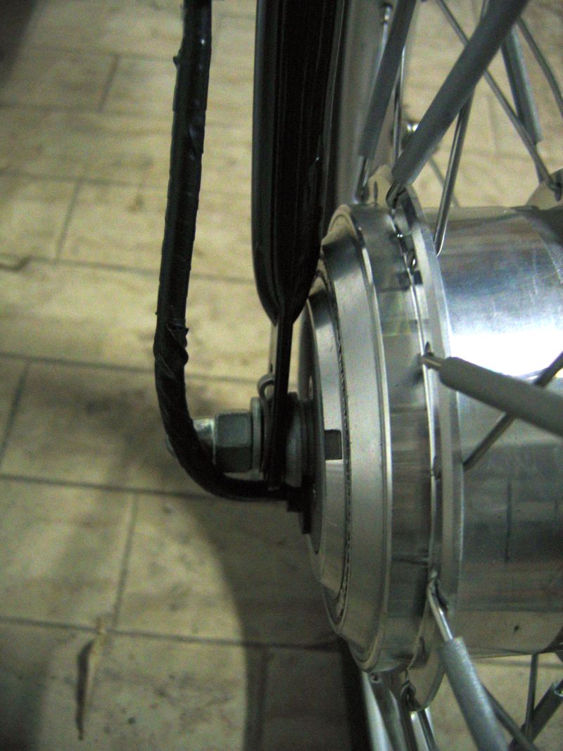 Ecco qua un po' di foto, le prove seguiranno quando mi arriverà la batteria. Dettagli dell'elettrificazione (alcedo correggi se sbaglio): Bafang (geared quindi) da 200 giri al minuto (scalatore) a tre fili (sensorless) Centralina PAS Il montaggio prevede le seguenti modifiche alla Merc originale: - allargamento forcella (fatto al solito modo....colonna filettata e dadi) - allargamento dell'attacco forcella-ruota. Ho limato e poi ridipinto per minimizzare i problemi con la ruggine Ovvio che con tutte queste modifiche bisognerà dare un'occhio allo stato della forcella via via nell'utilizzo, comunque sono fiducioso. Per adesso l'ho provata senza batteria e sinceramente il cambiamento tra prima dell'elettrificazione ed adesso mi sembra davvero trascurabile...rimane la splendida pedabilità e anche il peso non mi è parso aumentare tanto (a sensazione intendo). Ovviamente la prova vera e proprio all'arrivo della batteria e soprattuto quando comincerò ad usare la bici ogni giorno in commuting intermodale....li si vedrà se ha la stoffa!! saluti