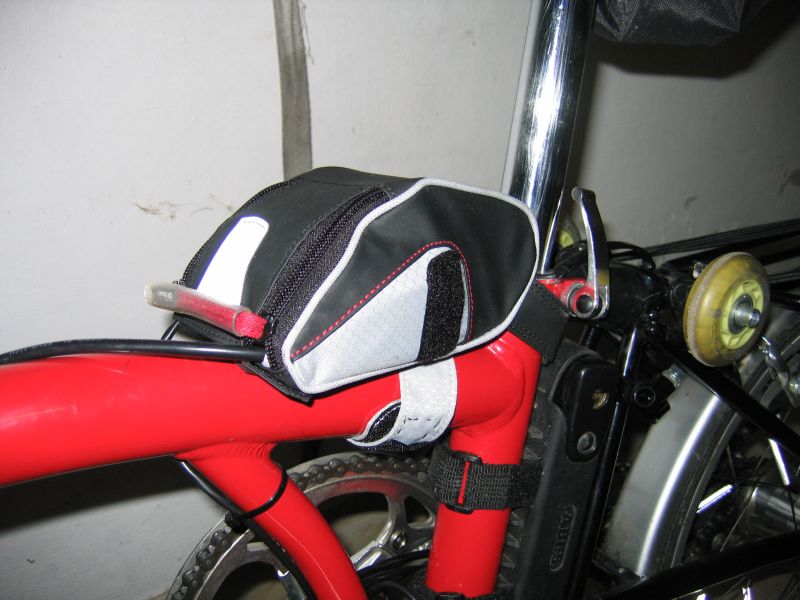 Dettaglio della borsa porta-centralina...è una borsa decathlon per sotto-sella da me modificata con un pezzo di velcro aggiontivo.