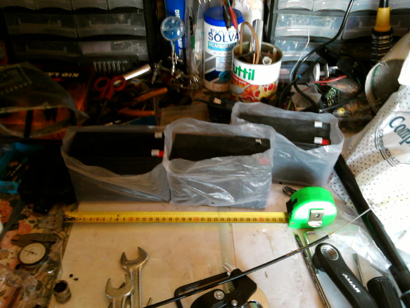 sono 3 batterie di dimensioni 150 x 100 x90mm pensavo di fissarle 2 ai lati dei tubi obliqui e una sopra qualcuno ha gia fatto prove simili????????