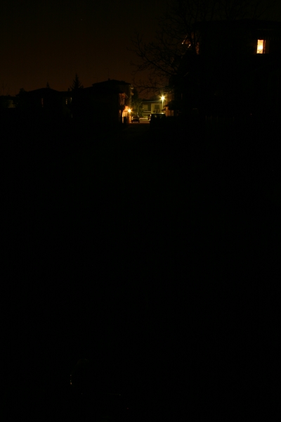 Pubblico le foto del faro spento/acceso. Le ho fatte sulla mia stradina di sassi. Per entrambe le foto ho usato gli stessi parametri di esposizione. Infatti in alto si nota la stessa intensità di luce. Si può notare la targa dell'auto in fondo (circa 80-100m) illuminata dal mio faro. Meglio sarebbe scaricare le due foto e guardarle in sequenza con un fotoviewer con Irfanview.