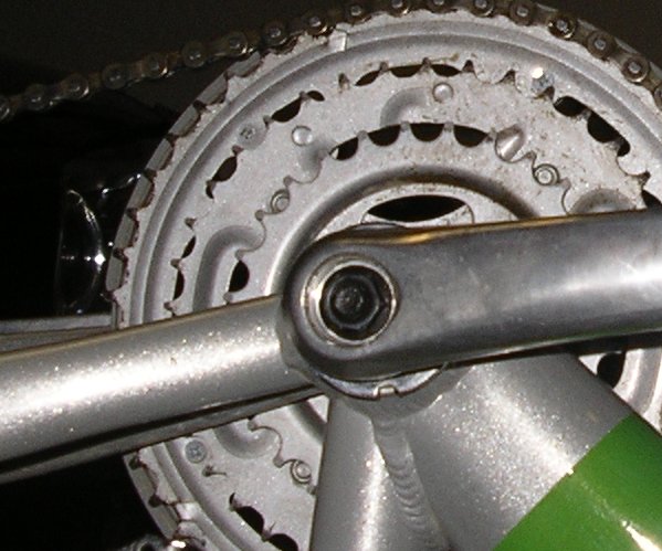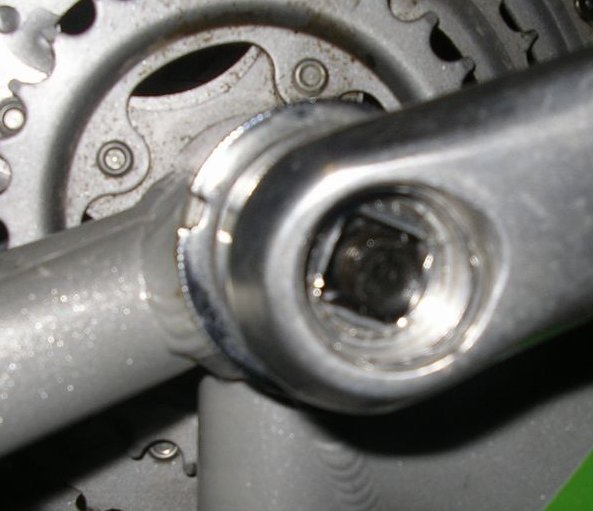 In attesa del mio primo kit, ho approfittato di questi giorni di vacanza per pulire catena, cambio ecc. ed iniziare lo smontaggio della bici. Ho provato a smontare la pedivella di sinistra che, tolto il tappo di plastica si presenta così: