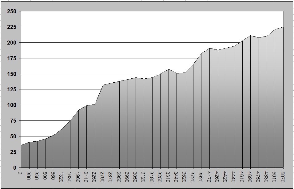 percorso tutto in salita per un totale di circa 5 Km e un dislivello di 190 metri (vedi grafico allegato);