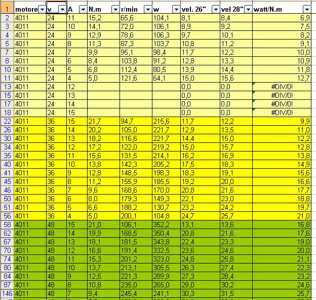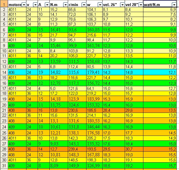 Poi mi sono detto: se un motore ha una gran coppia ma consuma molto non mi sta bene, si mangia tutta la batteria e mi lascia a piedi. Così ho generato una colonna che è il rapporto tra potenza e coppia. I motori con i valori più bassi dovrebbero essere quelli preferibili (restando nella norma italiana che un motore deve aiutare fino a 25km/h e non di più aiutando sempre meno).
