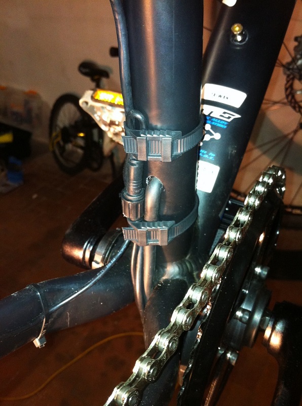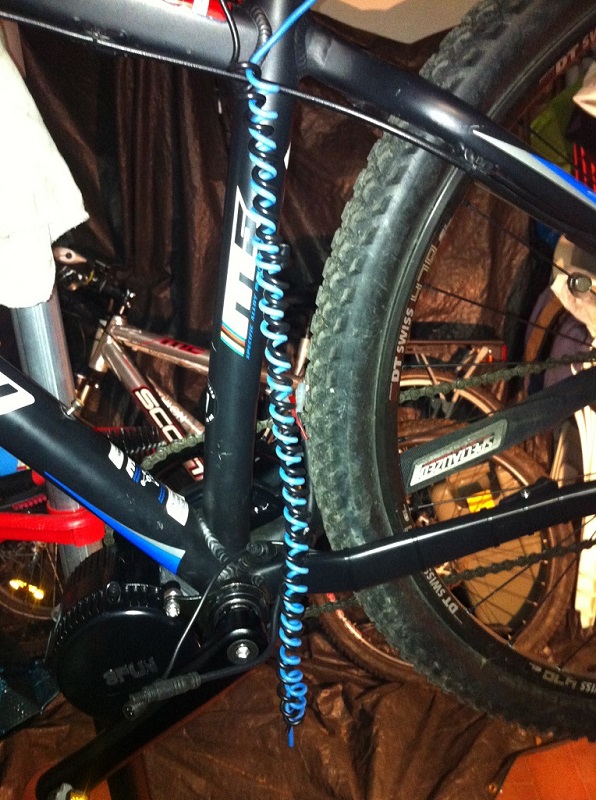 La particolarità di cui sono discretamente orgoglioso è che il cavo della batterie è spiralato e passa dentro al tubo verticale, così il cablaggio è molto pulito e la sella si può alzare e abbassare senza difficoltà.