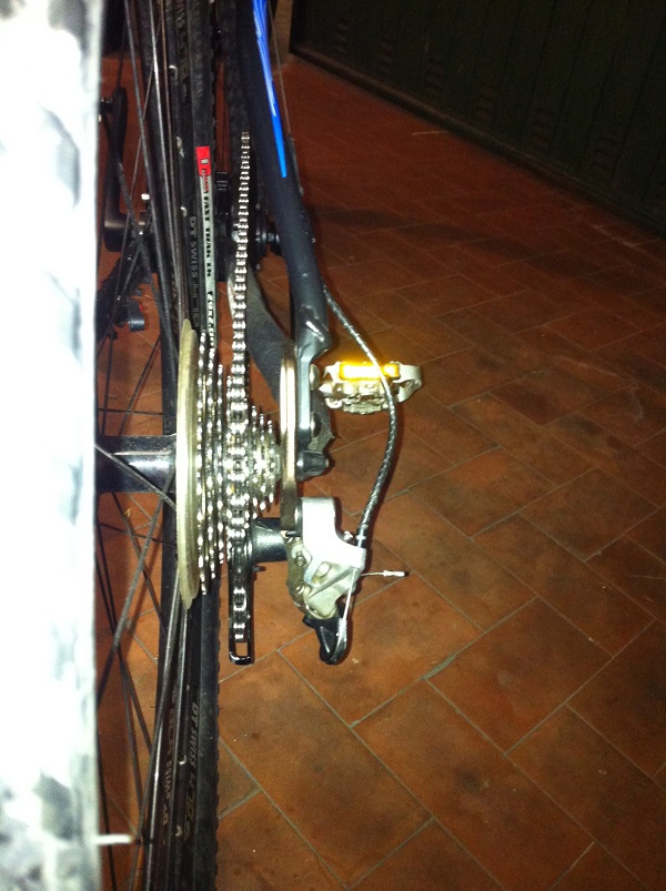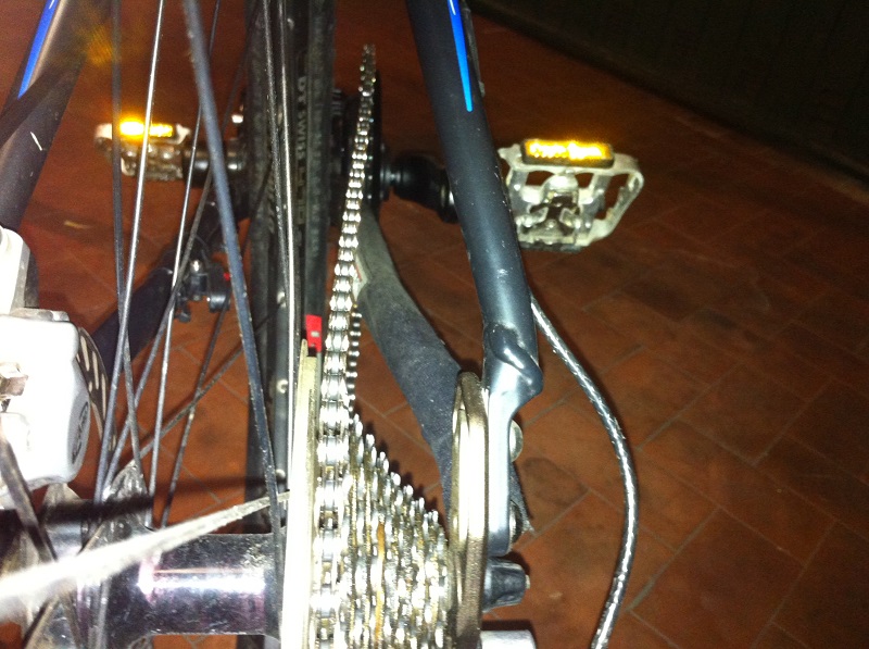 Ho aggiunto 4 maglie (il massimo che ho trovato in una catena intera dal mio pusher sotto casa e le cose vanno molto meglio. Un po' di "S" la fa sul pignone più grande, cambia più fluido, ma direi che è ancora troppo corta perché quando metto il pignone piccolo il tendicatena sta più avanzato di come lo vedo sulla configurazione normale nelle combinazioni a pignone piccolo (5° con la corona piccola, 7° con la media, 9° con la grande). Ma ribadisco che il cambio lavora bene (almeno nei giretti davanti al garage, non ho ancora fatto una vera prova su strada. Il mio timore è solo che la molla del tendicatena, lavorando così tirata, si snervi. Da bambino il ciclista mi diceva che la bici andava parcheggiata in garage, quando non usata, con la combinazione di rapporti a corona e pignone più piccoli, per far riposare le molle....