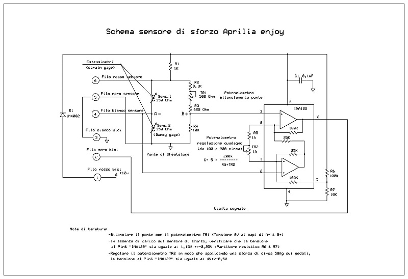 Ciao a tutti. Questo post è scritto per condividere il lavoro fatto in collaborazione con altri due utenti “ciccio63” e “monkey” che hanno contribuito a fornirmi lo schema originale del sensore di sforzo montato su enjoy ricavandolo direttamente dall'analisi di un sensore rotto e che stanno sperimentando, di fatto, tutte le modifiche circuitali su di una enjoy. In allegato foto del sensore di sforzo rotto: