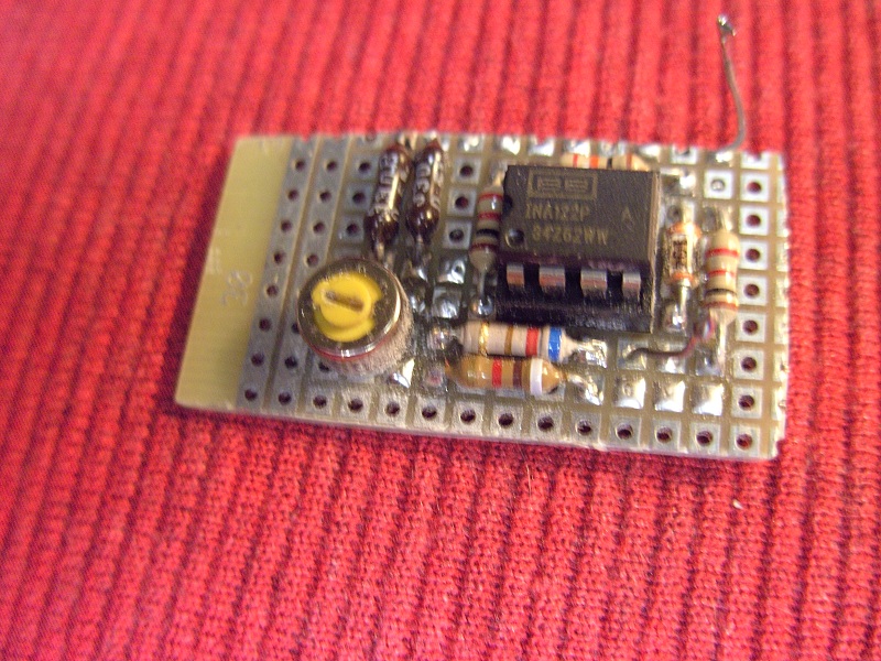 Comunque, considerando l’evoluzione dei componenti elettronici e lo spazio molto limitato a disposizione per questo circuito, ho pensato anche di proporre e allegare una versione più moderna e compatta del circuito di condizionamento usando il componente “INA122” specifico per fare questo lavoro e che ancora non ho testato ma ritengo possa funzionare almeno quanto lo schema originale.