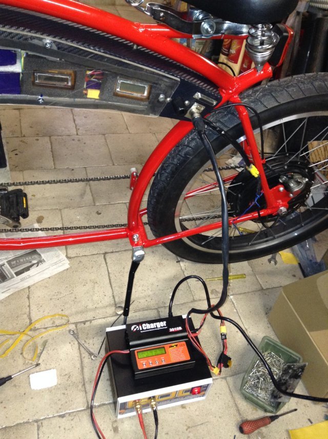 Le batterie (per ora)sono composte da Lipo nanotech 5S 8Ah 25C per ottenere infine 20S per una tensione nominale di 74V 8Ah caricate e bilanciate con l'apposito caricabatteria/alimentatore iCharger 3010B