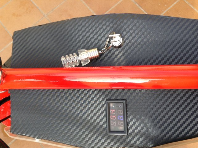 Altri componenti elettrici sono lo staccabatteria,il pulsante precarica/antiscitilla con la resistenza,la chiave bipolare on off,display wattometro 100V 100A con shunt esterno un db25 per bilanciare e un xlr 4 poli per caricare 10S per volta.Acceleratore di derivazione monopattino con interruttore limitatore 250W e possibilità della funzione pas con la disattivazione di quest ultimo. Leve maggiorate per freni meccanici con cutoff e clacson con sirena autoalimentata.