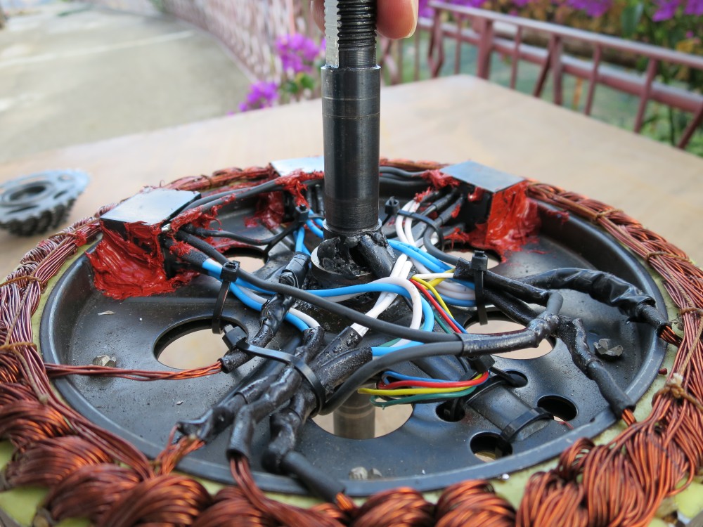 Dalle foto non si vede niente di stranno, oltre a cambiare i cuscinetti prova a soffiare lo statore con un compressore, e/o pulire con un pennello per evitare che rimanga qualche sporcizia tra rotore e statore.