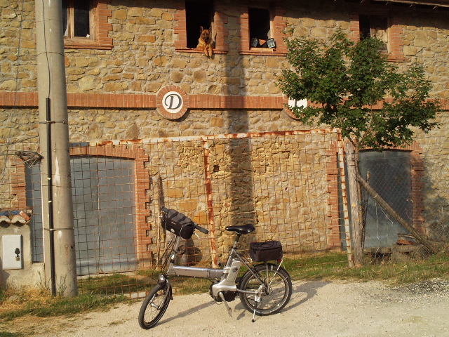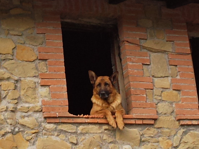 in uno dei mie percorsi preferiti di cicloturismo montano in abruzzo, passo davanti una casa alla cui finestra si affaccia un pastore tedesco che pare abbia interesse per la bicina pieghevole svizzera ....