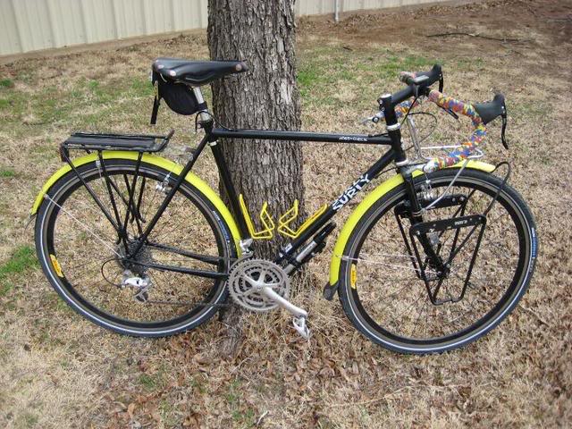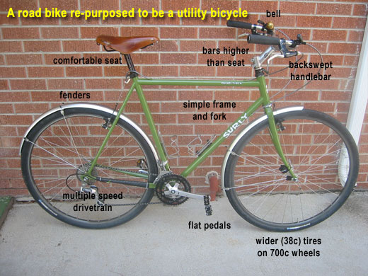 Come dicono qui: www.andrewduvall.org/bikeUtility.html | | This Surly Cross-Check cyclocross/road bike has been re-equipped as a utility bike. The frame allowed for the use of fenders and wider tires, making it a good candidate for conversion. This bike is quite versatile and has been used for tasks ranging from commuting to trail riding to light touring to grocery and child hauling with a trailer |