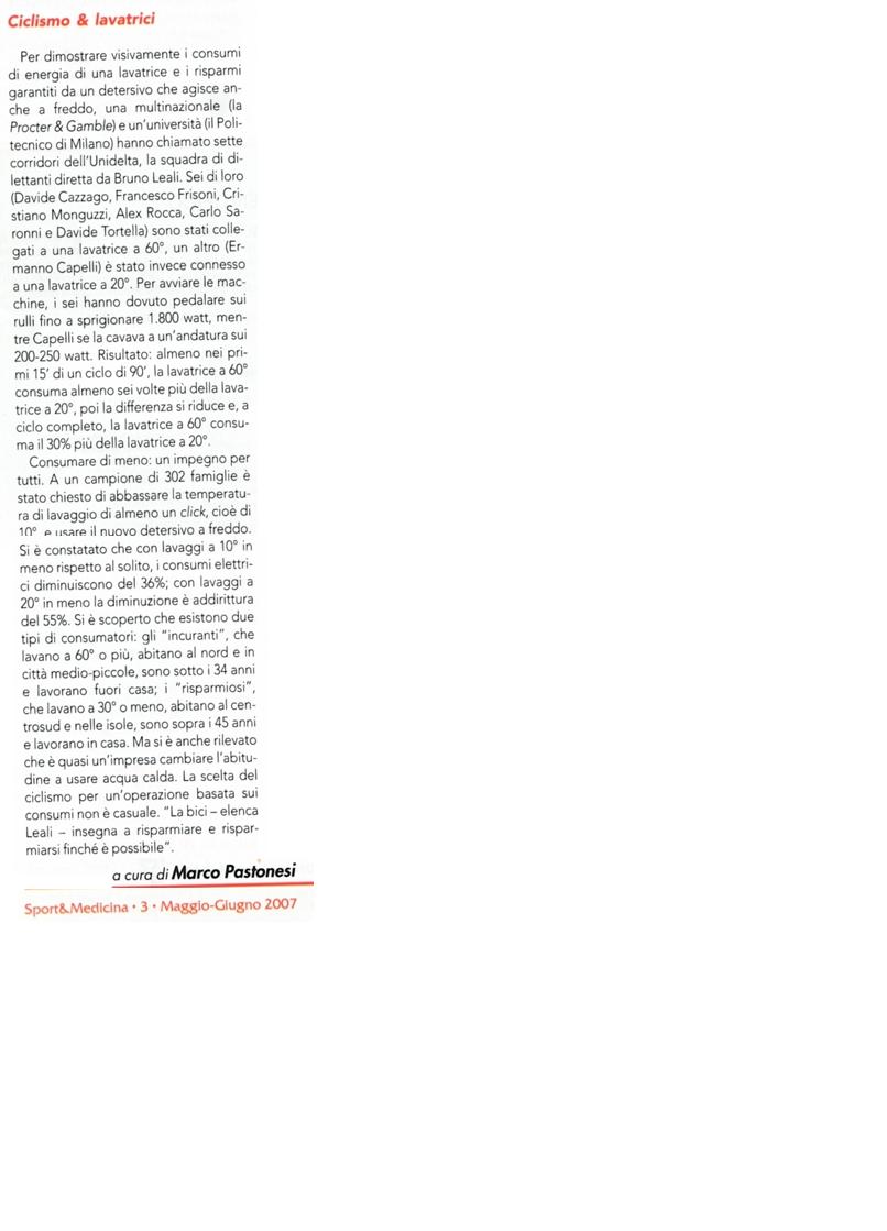 A proposito di risparmio energetico , bucato e.....ciclismo sfogliando una vecchia rivista di "Sport e Medicina" ho trovato questo articolo che descrive un curioso esperimento fatto da una nota casa di detersivi che mette insieme ciclisti,lavatrici e temperature ideali di lavaggio.