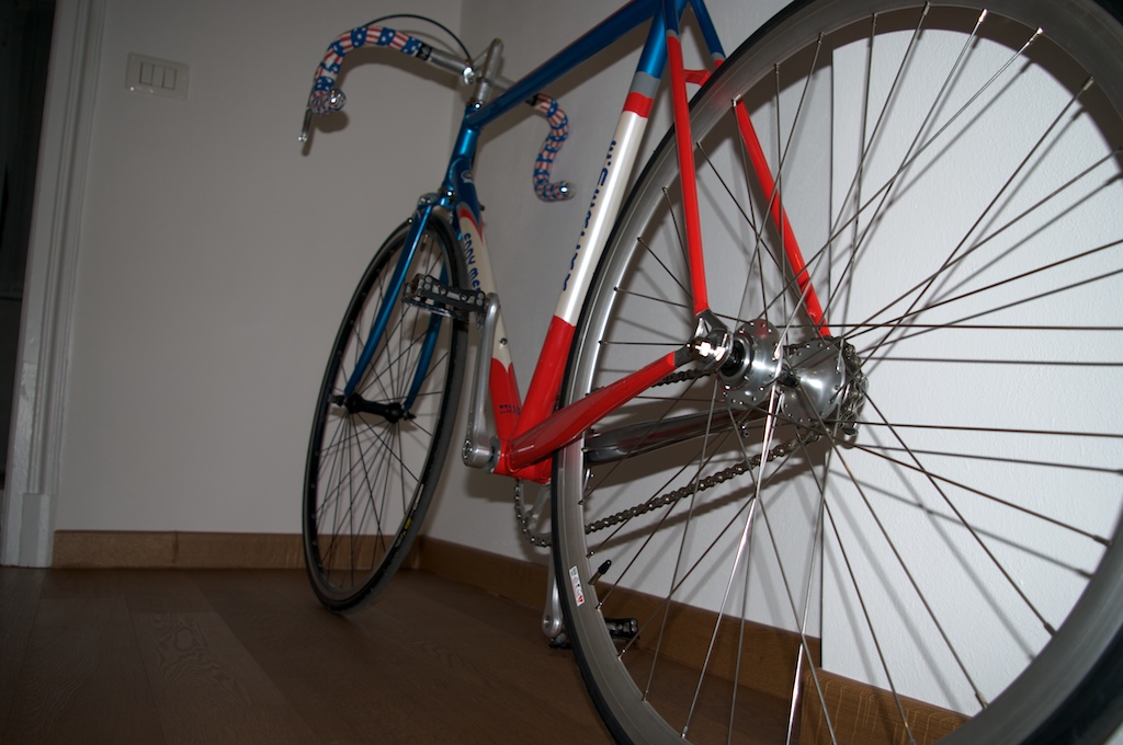grazie dei complimenti, la sella la possedevo già e devo dire che nonostante la durezza alla fine risulta più comoda di tante altre, in futuro magari la cambierò. il mozzo è predisposto per avere anche il pignone libero, ma per il momento vado solo di fissa. i cerchi sono differente in quanto l'anteriore è stato recuperato in un negozio a un prezzo modico, mentre la posteriore me la sono fatta fare a milano. i compertoncini sono dei federsten fortezza 700x23. |