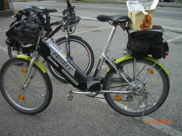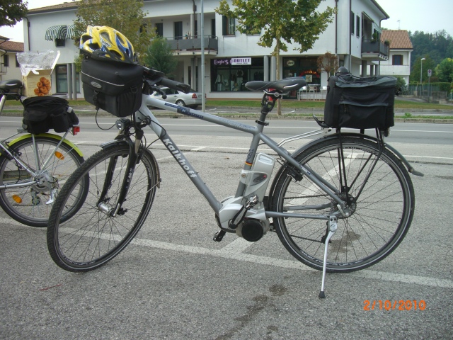 Da qui al punto di arrivo e punto di ritrovo sono un paio di Km che percorriamo in brevissimo tempo. Salutiamo Sjor e Leo che riprendono i loro mezzi per fare rientro a casa. Gli altri tre invece si avviano verso il centro di Montebelluna dove Pix prenderà il treno e Giordano ritroverà sana e salva la sua auto. Infine Monta in b. ed io facciamo ritorno al punto di partenza presso Biadene. In totale alla fine saranno una sessantina di Km con un dislivello che sfiora i 500m (i saliscendi incidono) percorsi ad una media finale di circa 22Km/h. Il mio consumo è stato di 4 led in totale alle due batterie, circa 240Wh corrispondenti ad un consumo unitario di circa 4Wh/Km.