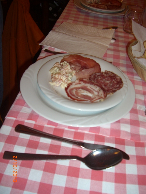 Entriamo nel caratteristico locale e troviamo già il tavolo imbandito con l'antipasto pronto