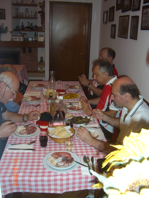 Doppia foto di gruppo prima di iniziare la più grande fatica della giornata: "una mangiata memorabile" che ha messo a dura prova perfino Sjor le cui resistenze culinarie sono ormai proverbiali! Immagine: