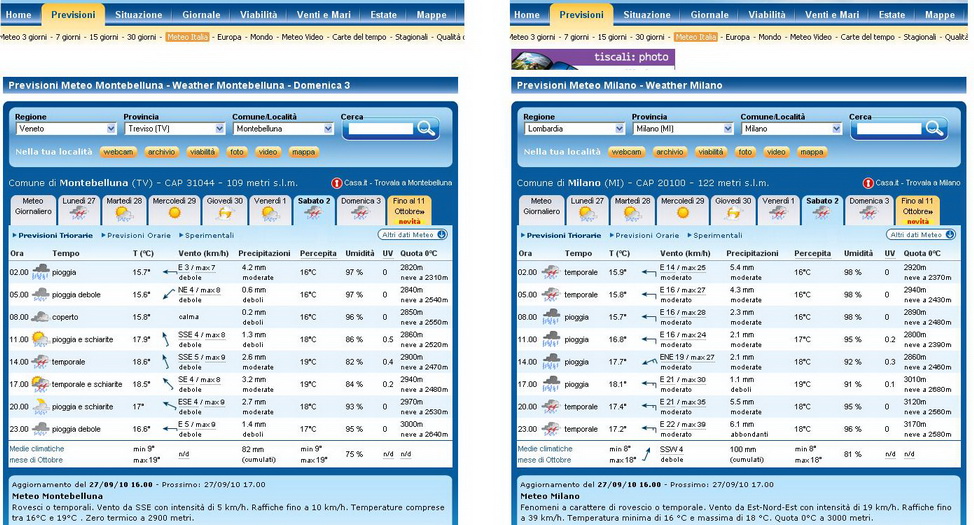 Ahi, ahi, mi sa che l'irriducibile deve cambiare idea. Mi spiace molto anche perchè più avanti dovrei fare un po' di riposo. A Milano è previsto temporale tutto il giorno, proprio alla partenza il buon Nuvola si dovrebbe fare sotto la pioggia da Lainate a viale Certosa (72Volts). Il pomeriggio a Montebelluna sembrerebbe decente ed al ritorno ancora temporale. Io guardo meteo.it che mi sembra più attendibile. E' un po' presto però non penso che cambierà molto. Aspettiamo giovedì!!