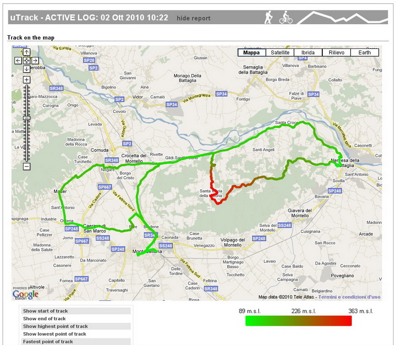 Comunque sono zone che ho frequentato assiduamente negli anni d'oro. Il Montello è stata la mia palestra! Anche se un tratto nella campagna (Via S. Valentino, da Nogarè a Muliparte) è stato per me una piacevole scoperta ... (utilità del GPS!)