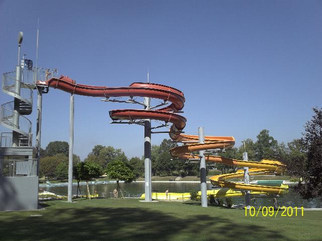 Tappa successiva in Stiria, dintorni di Graz, campeggio ultraverde dove effettivamente ho pedalato quasi nulla ... ma in compenso ho potuto scoprire alla tenera' eta' di 33 anni quanto siano divertenti gli scivoli acquatici