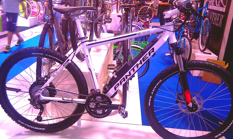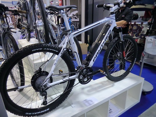 - lo stand della Panther presenteva un modello che montava il nuovo Bafang BPM a cassetta e telaio particolare con tubo obliquo sdoppiato per integrare in mezzo la batteria :