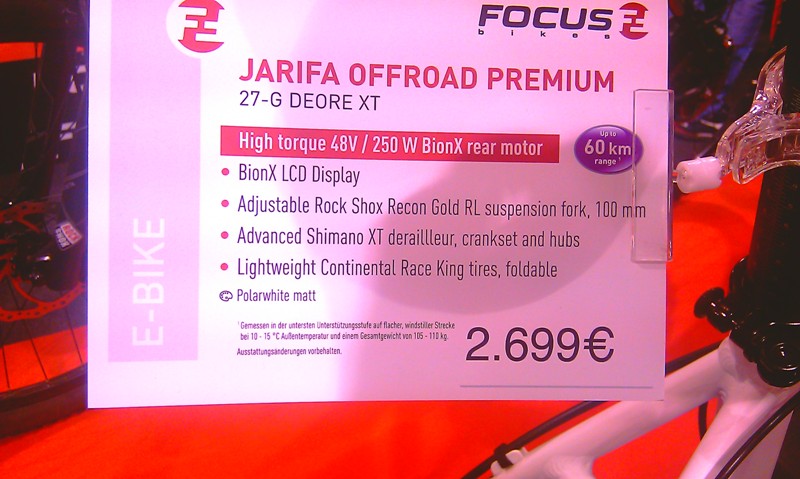 Con marchio Focus c'era la bella mtb Jarifa con motore Bionx 48V