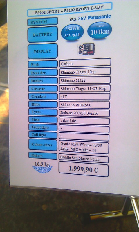 Bionx: ormai in giro c'e' solo il 48V, dei 36V non c'era traccia in fiera. L'ho provato, sembra identico al mio, con pregi e difetti e impossibile da giudicare se non si smanetta sui parametri; non mi ha impressionato, probabilmente il punto di forza è che è più leggero, stop.
