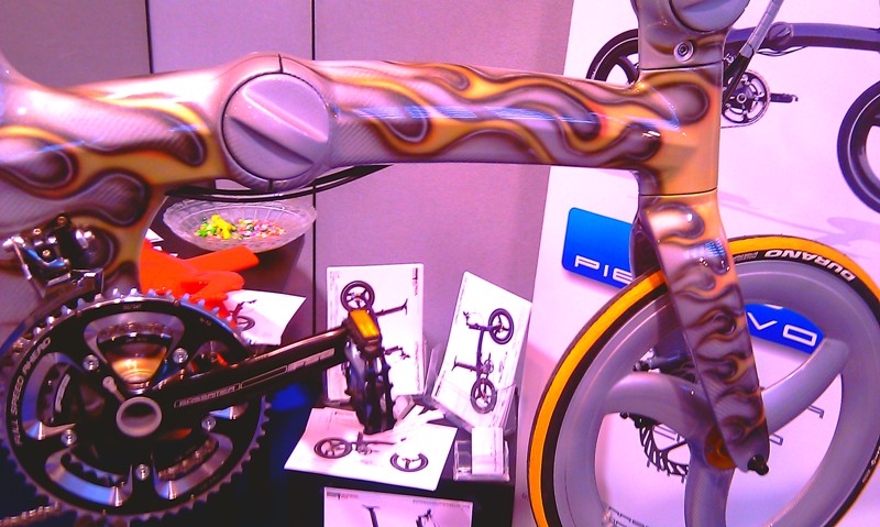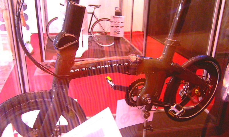 Le mie foto finiscono doverosamente con le superpieghevoli "grigiocarbonio" vi ricordano qualcosa? Noi di jobike abbiamo conosciuto proprio l'inizio di questa avventura. Avrei voluto conoscere i realizzatori di persona, ma purtroppo, e giustamente, erano impegnati ad una premiazione. Non posso dire se queste bici siano funzionali o no, e ovviamente i costi per il momento sono molti alti, ma sicuramente sono da museo di arte moderna !