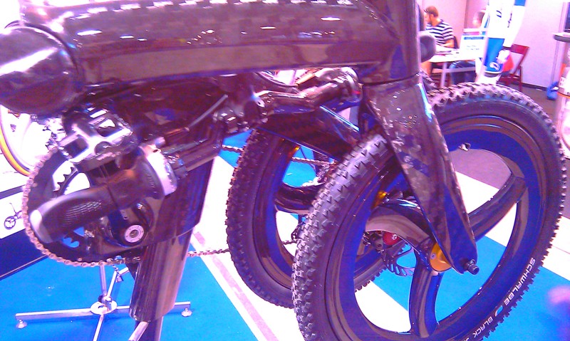 Sono stato anch'io alla fiera di Padova e devo dire che sono rimasto frastornato dalla grande quantità di biciclette di ogni tipo, marca, tipologia, modello, ecc ecc. Una vera abbuffata, quasi una indigestione, tanto che dopo la prima ora, ora e mezza, ho perso la concentrazione. Meno male che c'è questo forum, dove posso apprezzare molte novità che mi erano sfuggite. Aggiungo anche io qualche foto: le prime riguardano una marca che a dispetto del nome KLASS-BIKE ha sede in Campania, che presenta una novità (non ancora immessa sul mercato) esteticamente interessante. Anche le borse di serie sono proprio belle, per l'uso di tutti i giorni.