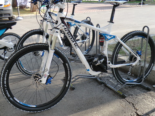 Provata anche l'Hibike biammortizzata con motore bosch . Era la prima volta che provavo il bosch. La bici mi piace tantissimo, il bosch rovesciato e dentro la culla è protetto e abbastanza mimetizzato. I pesi grazie anche alla batteria sul tubo obliquo risultano assai equilibrati e le geometrie corrette per una mtb. La bici a motore spento sembra una normale muscolare. Il motore dà subito una sensazione di "forza" ovvero la sensazione che ha coppia da vendere e questo si puo' percepire anche al livello più basso assoluto, mentre a livello massimo avete sotto i piedi un torello da domare piuttosto che pedalare. Sembrava abbastanza silenzioso, ma in quella confusione penso che anche un cyclone passa inosservato. Un pelo meno naturale di panasonic e anche della ducati che avevo appena provato, ma con un tale range di assitenza da poter accontentare tutti direi e penso che in montagna sia il numero uno con quella coppia.