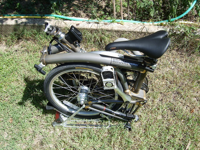 il tutto porta a una ripiegabilità praticamente identica alla brompton originale (3cm di larghezza in più per un ingombro totale di poco superiore ai 100 litri - il noto record di ripiegabilità di questa bici)