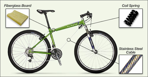 con molla per ammortizzare il telaio, e fibra di vetro per la giunzione.