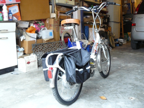 Ho pagato le batterie 100 euro tondi; il peso netto totale dichiarato è 12,7 Kg. Il giro di prova serviva anche per verificare la distanza delle sacche dai pedali. Come si può notare dalle foto, sul portapacchi ho ancora circa 10 cm di spazio verso dietro. Dalle prime impressioni in garage, montando sulla bici senza cavalletto e provando ad inclinarla da ambo i lati, sembra bene equilibrata (io temevo che tirasse a sinistra). Il rimontaggio del cestino avrebbe anche lo scopo di costringere la bisaccia verso il dietro, ma ne renderebbe l'asportazione meno agevole, quando lascio la bici lungamente incustodita. Sempre a vostra "esposizione" per commenti e suggerimenti. Ciao ! |