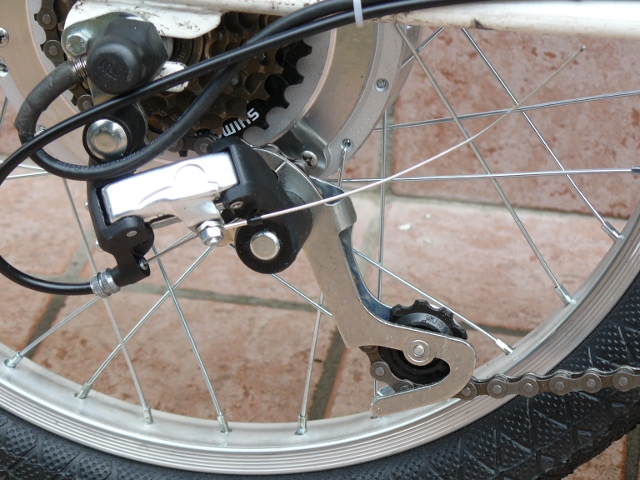 installazione del deragliatore posteriore e del comando a manubrio, in modo da rendere utilizzabile il pacco pignoni. Ciò ha comportato anche la sostituzione della volantina (con un paio di denti in più) e della catena.
