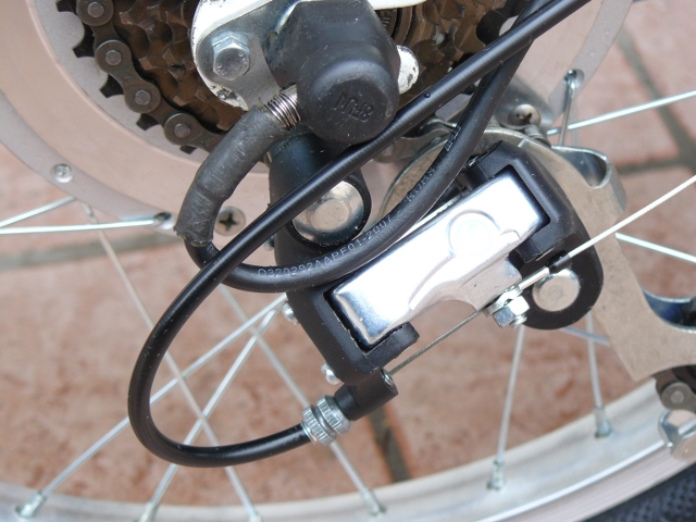 particolare di montaggio del cambio. La guaina del cavetto di comando è un po' corta perché il mercante aveva detto che la lunghezza era anche troppo abbondante :-( Immagine: