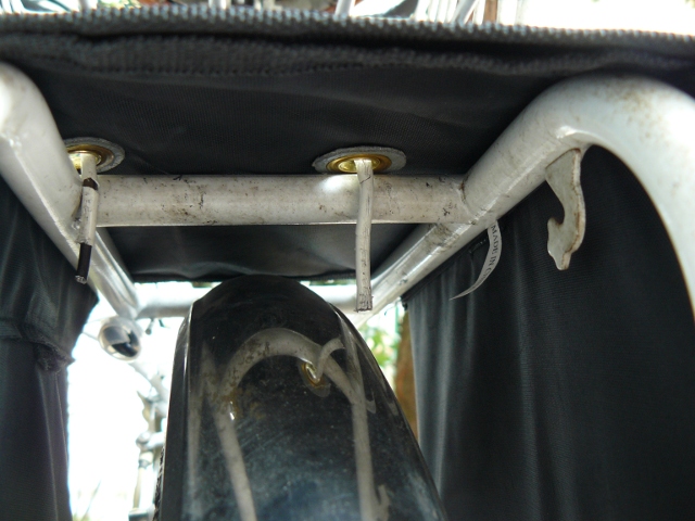 Per i più curiosi, allego due foto di come ho risolto il montaggio del cestino posteriore, sopra la bisaccia porta-batterie.
