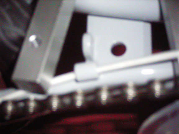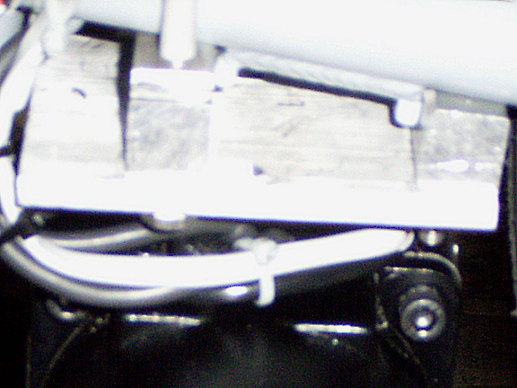 In genere in quel punto vi è un eccesso di saldatura che va rimosso con molta precisione evitando di lesionare il telaio, poi va ritoccato tutto con la sua vernice. Se l'eccesso di saldatura non viene rimosso le staffe non aderiscono e il motore può non essere montato perfettamente perpendicolare al telaio, inoltre potrebbe anche spostarsi durante il funzionamento. Io per limare con precisione queste parti ho usato delle lime molto fini e sottili che vengono utilizzate per realizzare a mano le chiavi delle serrature. Nella foto vedete a sinistra anche che ho dovuto fare due spessori di alluminio in modo da far rimarere orizzontale la piastra di supporto del motore che altrimenti sarebbe stata obliqua |