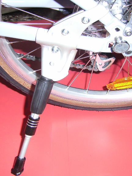 Già che ho detto che col Cyclone si perde la possibilita di utilizzare il cavalletto originale vi parlo di un altro problema, anche se minore. Il cavalletto posteriore; quello che sono riuscito a trovare era troppo lungo per una bici con ruota da 20".