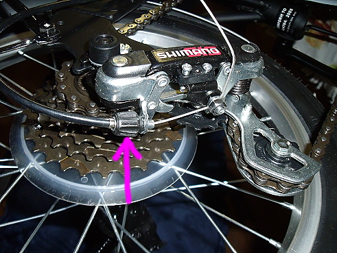 mi e' arrivata oggi la pyramid e mi sento un faraone! pagata il 12/01/2010 spedita il 13 arrivata il 19 (7 giorni con in mezzo sabato e domenica,quindi 5 giorni lavorativi)e' in ottime condizioni,aveva solo le gomme sgonfie che ho gonfiato al massimo (circa 3 bar)ed il cambio che non era regolato,non entravano 2 marce,l'ho messa tra il tavolo ed una sedia in modo che potessero girare i pedali (non l'ho messa sottosopra per non far appoggiare il campanello in dotazione e la leva delle marce) e l'ho regolata in un minuto,non ho mai regolato un cambio in vita mia,pensavo che si dovessero girare le due viti sotto la scritta "shimano" ed invece ho cominciato a girare quel pomello nero indicato dalla freccia e vedevo che la catena non faceva piu' rumore tra l'altro casualmente l'ho girato subito dalla parte giusta;per il momento ci ho solo fatto un giro nei garage ed ho visto che partendo da fermo riesco a fare la salita dei garage... interessante... domani gli monto il contakm e l'elastico con i ganci nel portapacchi utile se mi capitasse di dover trasportare qualcosa.